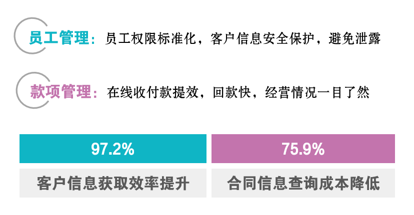 使用獲取工商信息模塊后,公司的基礎(chǔ)信息可以直接在系統(tǒng)中獲取,不需要再換網(wǎng)頁查詢,效率提升了97.2%;在使用了客戶管理-合同模塊后,企參謀可以將合同與公司一一對應(yīng),賬套信息、稅務(wù)相關(guān)信息、電子文檔等,統(tǒng)一存儲在系統(tǒng)進行管理,避免分散存儲和紙質(zhì)浪費,有助于企業(yè)快捷查詢客戶信息,時間成本降低了75.9%。