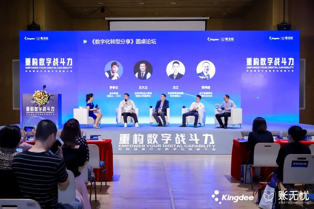最后在《數(shù)字化轉(zhuǎn)型分享》圓桌論壇環(huán)節(jié)中,北京華財(cái)會(huì)計(jì)股份有限公司董事長(zhǎng)王久立、金米財(cái)稅創(chuàng)始人羅孝文、金不換董事長(zhǎng)范偉型、深圳和創(chuàng)財(cái)務(wù)代理有限公司聯(lián)合創(chuàng)始人王江4位行業(yè)大咖進(jìn)行了一場(chǎng)精彩的巔峰對(duì)話(huà)。
