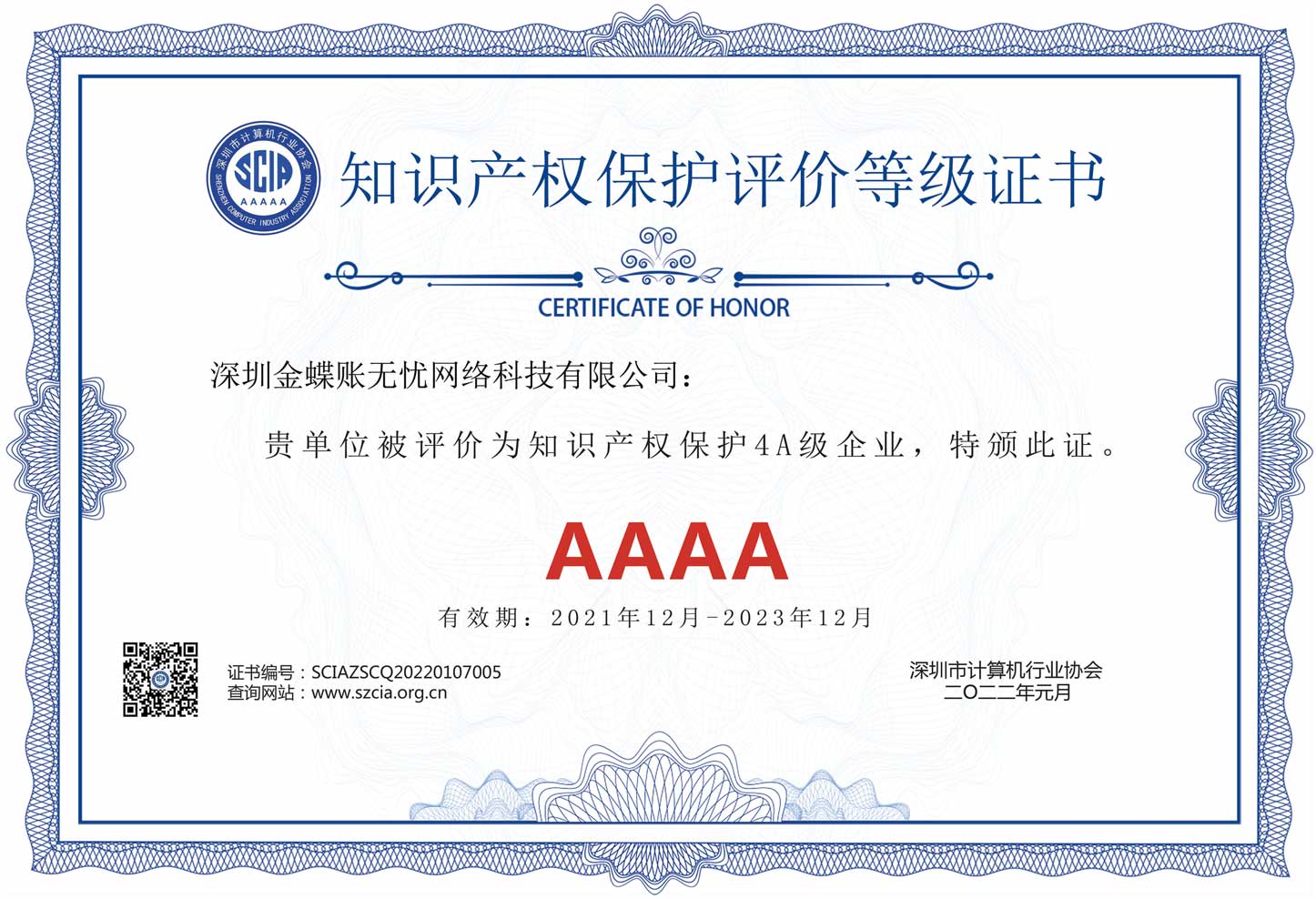 2022年1月7日,由“5A級社會組織”深圳市計算機行業(yè)協(xié)會(以下簡稱“計協(xié)”)舉辦的2021年度會員大會暨年度高峰論壇在深圳成功召開。為樹立行業(yè)榜樣,計協(xié)在大會上表彰了“信得過企業(yè)”、“信得過產品”和“知識產權示范企業(yè)、知識產權優(yōu)勢企業(yè)”、“協(xié)會專家”榮譽。金蝶賬無憂憑借其產品創(chuàng)新以及知識產權保護的突出表現(xiàn),榮獲“信得過產品5A評級“、“知識產權保護評價4A等級”的雙榮譽評定。