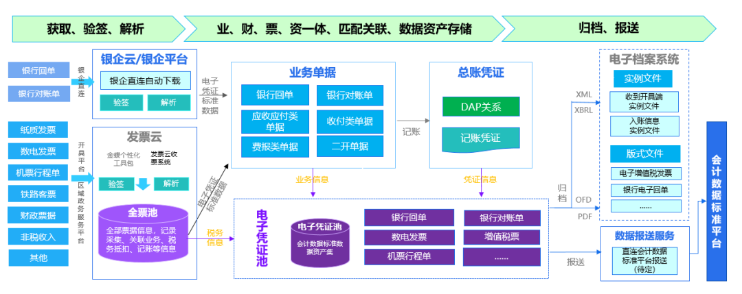 為更快更好的服務(wù)金蝶各產(chǎn)品線的客戶群體,金蝶產(chǎn)品研發(fā)平臺統(tǒng)一產(chǎn)品方案,明確在金蝶云·星瀚財務(wù)中臺架構(gòu)中增加電子憑證池設(shè)計,協(xié)調(diào)大中小市場財務(wù)云產(chǎn)品、發(fā)票云和金蝶賬無憂代理記賬平臺產(chǎn)品團(tuán)隊,統(tǒng)一技術(shù)標(biāo)準(zhǔn),實現(xiàn)相關(guān)創(chuàng)新產(chǎn)品開發(fā)的高效并行。統(tǒng)一通道建設(shè),銀企云、發(fā)票云負(fù)責(zé)電子憑證的采集通道能力建設(shè),電子檔案系統(tǒng)滿足歸檔要求,統(tǒng)一建設(shè)數(shù)據(jù)報送通道,直連會計數(shù)據(jù)標(biāo)準(zhǔn)平臺提供報送服務(wù)。